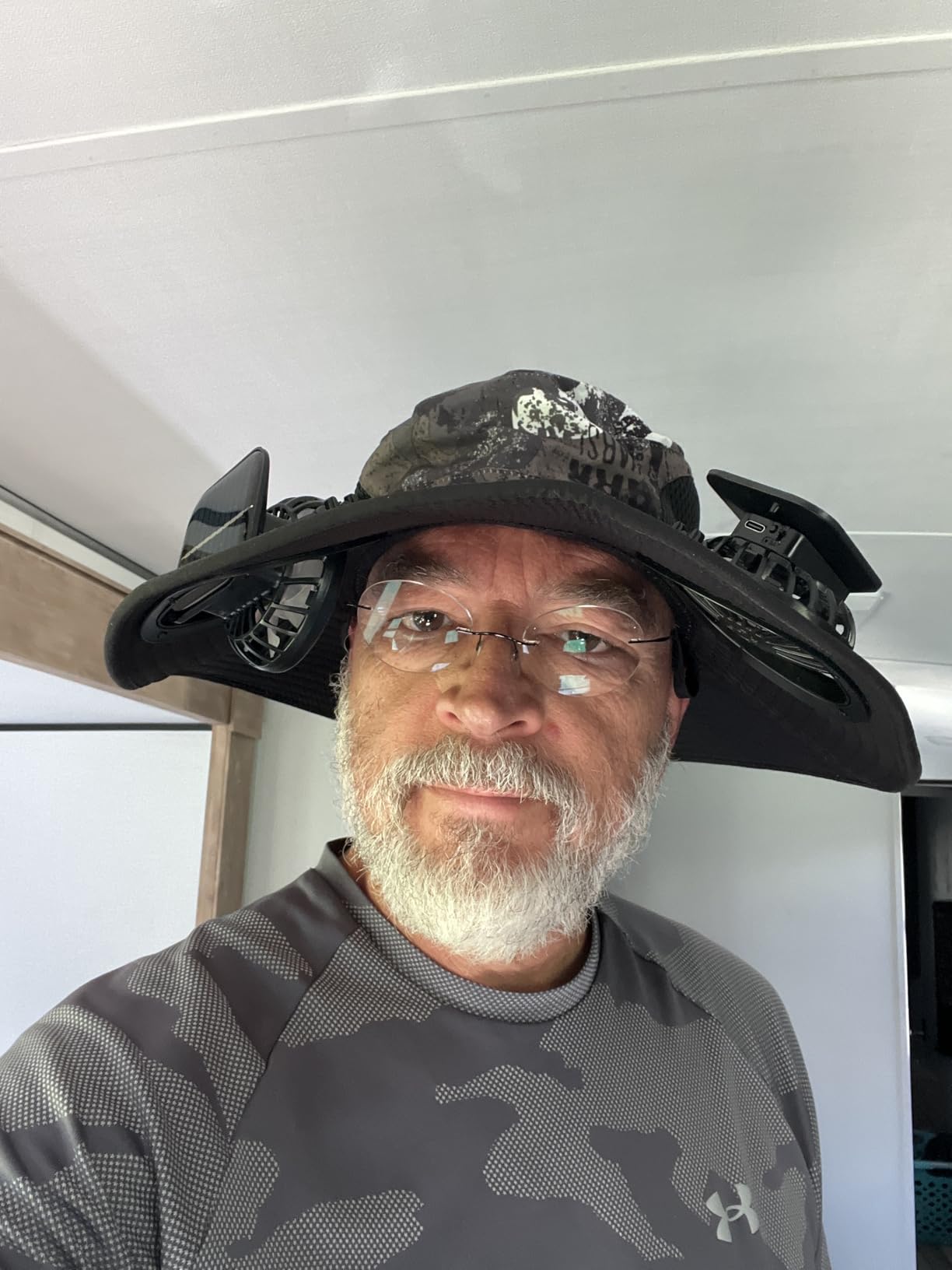 I bought this hat as a birthday/Father's Day gift. I let my husband open it early, and he thought it was a pretty nifty idea. My only complaint or recommendation would be to have an option for the fans to be on the back of the hat. The design isn't really conducive to turning the hat around, but my husband thought the fans blowing on his neck would be a nice cooling effect as well. He will probably wear it backwards away!