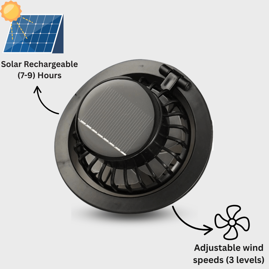 Experience instant relief from the heat with two ultra-quiet fans powered directly by sunlight — no batteries, no hassle, just fresh airflow wherever you go.